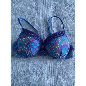 Aeri Blue Floral Push Up Swim Bikini Top Size 34 C