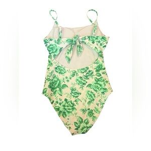 Aerie 1 Piece Swimsuit green cream floral Botanical coquette retro Small Long