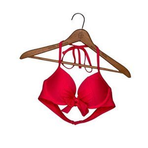 Aerie 34B Pink Double Bow Front Bridget Padded Push Up Halter Bikini Swim Top