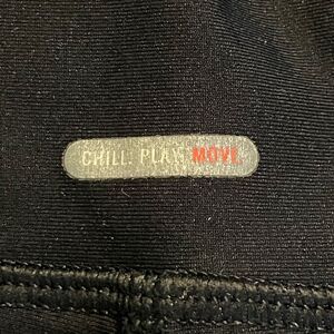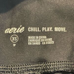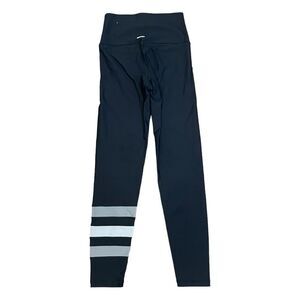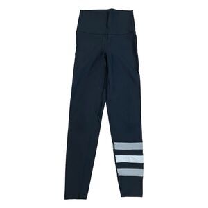 Aerie Athletic Leggings in Black with Gray Stripes Stretch Nylon. They feature a 9" Mid-Rise with a Pull-On Wide Elastic Waistband Pant . Great for running, working out, yoga, the gym, running errand or just lounging around.
