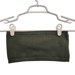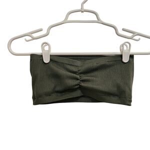 Aerie AE Dark Green Ribbed Real Good Bandeau Strapless Bra Top Size Medium