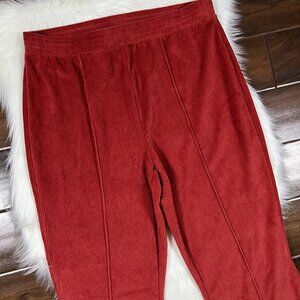 Aerie America Eagle Women's Size Large Red Velour Ribbed Flared High Rise Pants
