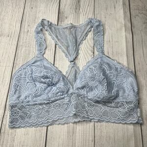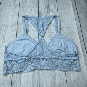 Aerie American Eagle Blue Lace T-Strap V-Neck Plunge Bralette Size Medium