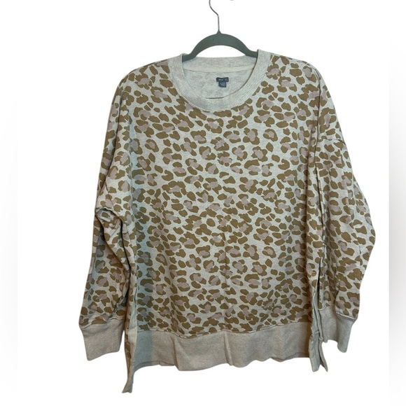 Pre owned like new. No signs of wear. Adorable tan and baby pink animal print oversized sweatshirt. Womens size large.