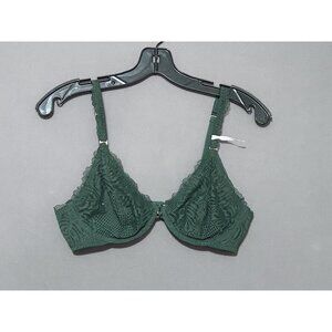 Aerie Balconette Bra 36C Green Lace Unlined Underwired