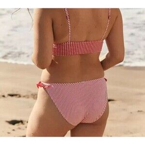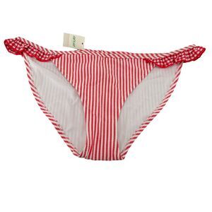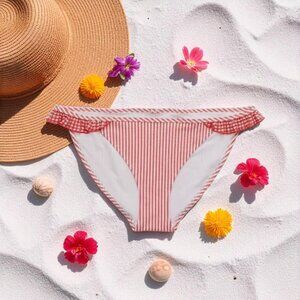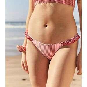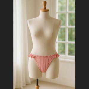 Aerie Bikini Bottom Size XS Red White Stripe Seersucker Ruffle Trim Swimwear NWT