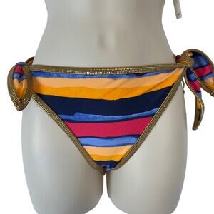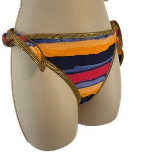 Aerie Bikini Striped Metallic Trim Push-up Top 36A Side Tie Bottom Large NWT