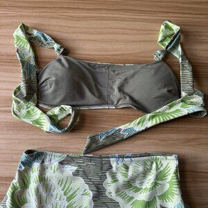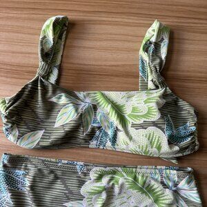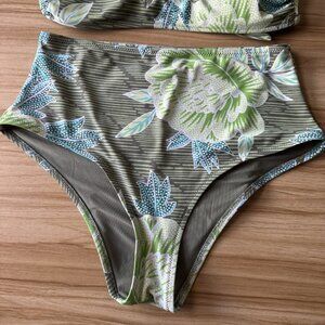 Aerie Bikini Swimsuit M 2 Piece High Waist Rise Green Floral Padded Tropical