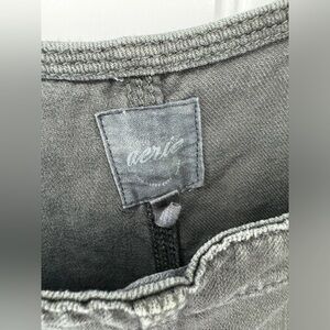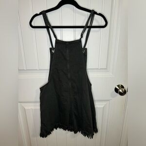 Aerie Black Distressed Denim Double Strap Shortall