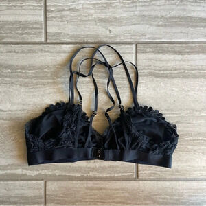 Aerie bralette, black lace triangle bra, strappy unlined bralette, women's size medium lingerie, trendy lace bralette top, Far Out collection bralette, casual everyday bra, stylish layering bralette