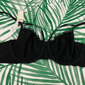 Aerie Black Floral Lace Unlined Balconette Bra Size 34B