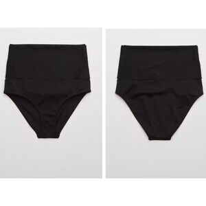 Aerie Fold Over Adjustable High Waist Full Coverage Black Bikini Bottom