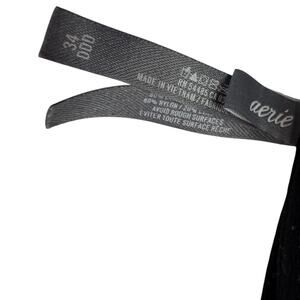 This Aerie bra features a sleek black design with molded cups for enhanced lift and support. The adjustable straps offer versatile styling options, while the smooth fabric ensures a comfortable fit throughout the day.