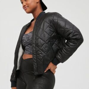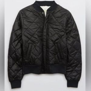 Aerie Black Quilted Sherpa Lined Bomber Jacket Size L