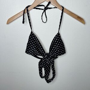 Aerie Black White Polka Dot Halter Triangle Bikini Swim Top Size XS