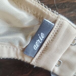 Discover the perfect blend of comfort and elegance with this Aerie bra, featuring a cream base adorned with intricate black lace detailing. The molded, padded cups and underwire support ensure a flattering fit, while adjustable straps offer personalized comfort. Ideal for both everyday wear and special occasions, this piece combines functionality with a touch of sophistication.