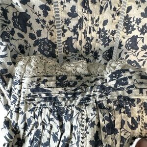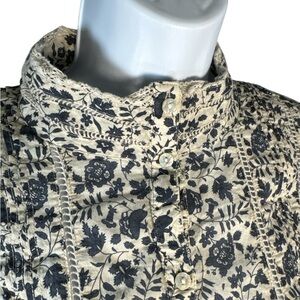 This top from Aerie showcases a sophisticated black and white floral print, enhanced by a mandarin collar for a touch of elegance. The boxy, relaxed fit ensures comfort and style, making it a versatile addition to any wardrobe.