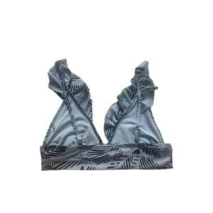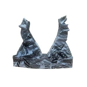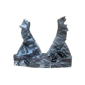 Aerie Blue & Black Triangle Bikini TOP ONLY Large Ruffle Adjustable Straps. No padding.