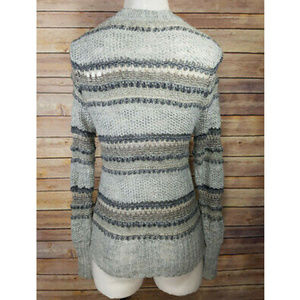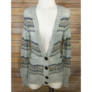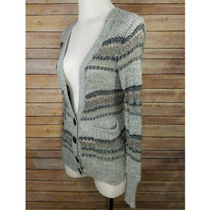 Aerie Blue Gray Knitted Acrylic Wool Button Up Striped Cable Sheer Cardigan