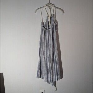 Aerie Blue Linen Blend Striped Halter Fringe Beachy Dress