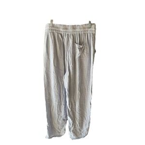 Comfy, breezy, and perfect for lounging or casual outings, these lightweight Aerie jogger pants feature a soft seersucker texture in a pale blue and white stripe. The relaxed fit and drawstring waistband make them a must-have for warmer days.