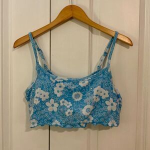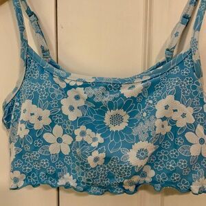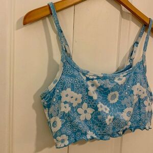 Aerie Blue White Floral Print Ruffle Trim Bikini Top Large