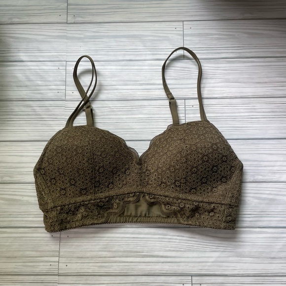 Aerie Bra Real Happy Wireless Push-Up in Green Floral Lace overlay 32B