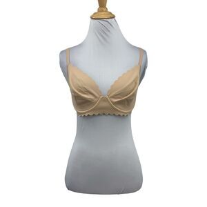 Aerie Bra Womens 34D Sand Real Me Full Coverage Unlined Scalloped Trim Underwire