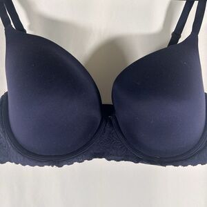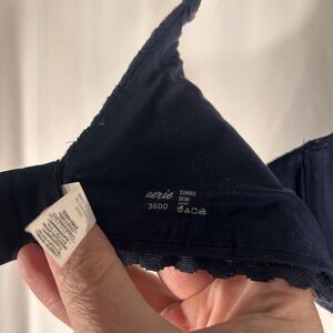 Aerie Bra Women's 36DD Navy Blue Padded Underwired Floral Lace Hook Eye