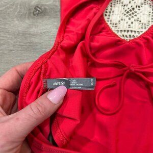 Aerie Bright Red V-Neck One Piece Bathing Suit Swimsuit Crochet Women’s Size XS