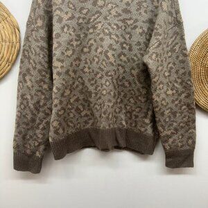 Aerie Brown Animal Leopard Print Oversized Crew Neck Knit Sweater Small Cozy