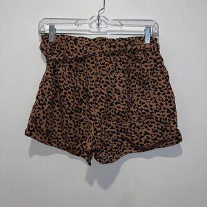 Aerie Brown & Black Leopard Print High-Waisted Tie-Front Women's Shorts Size S