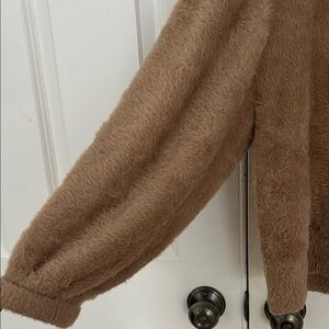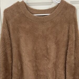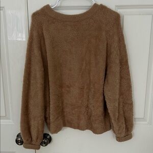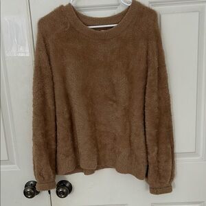 Aerie Brown Fuzzy Pullover Sweater size medium tan crewneck
