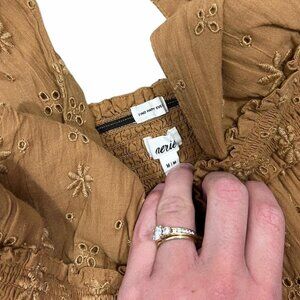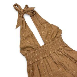 Aerie Brown Halter Dress Floral Embroidered Medium Boho Festival