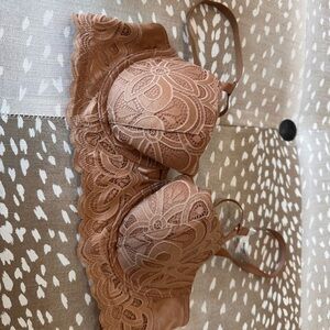 Aerie Brown Lace Bra with Floral Design