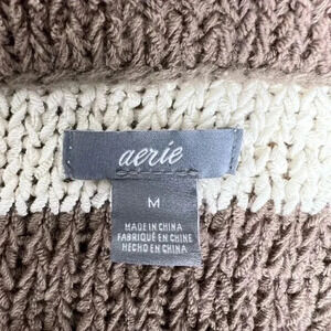 Aerie Brown and Cream Striped Crochet Sweater XS