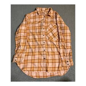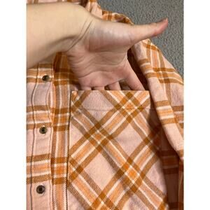 Aerie Button Top Small Fleece Long Sleeve Orange Plaid Warm Winter Western Shirt