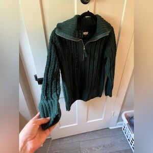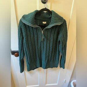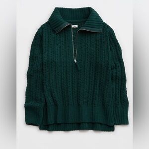 Aerie Cable Car Quarter Zip Sweater Deep Forest Green XXS Oversized fit