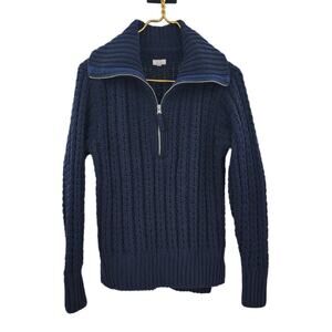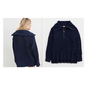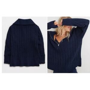 Aerie Cable Car Quarter Zip Sweater Navy Blue Cozy Oversized XXS