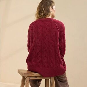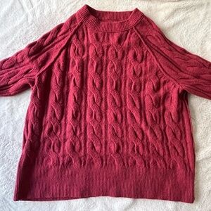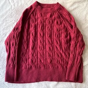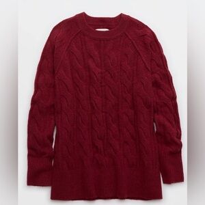 Aerie Cable Crew Sweater Dark Red Cherry Tart Size S