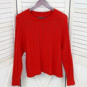 Aerie Cable Knit Crewneck Crop Sweater Red Small