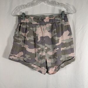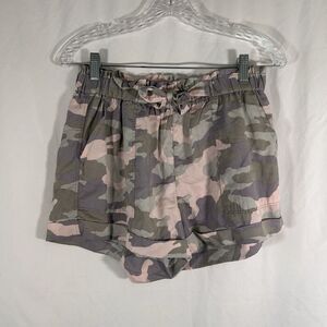 Aerie Camo Shorts Women's Medium Green Pink Camo Pull On Tie Pockets 3" Inseam