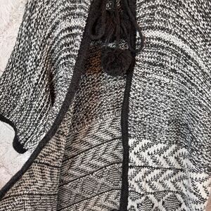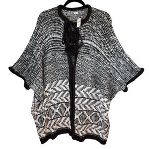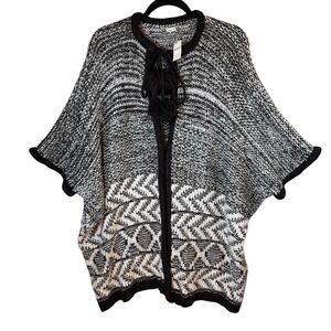 Aerie Cardigan Sweater Poncho One Size Women’s Open Front Pom Pom Tie Knit NEW