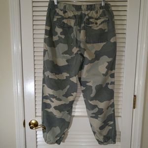 Aerie Cargo Joggers Medium Pull On Elastic Waist Ankle Green Camo Camouflage