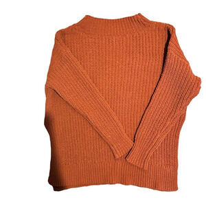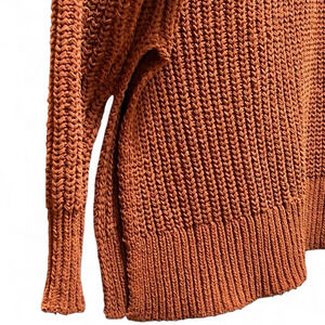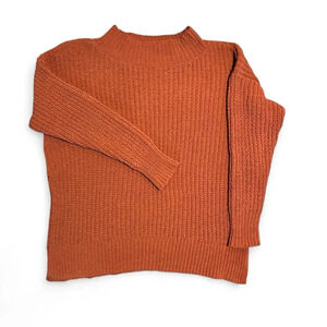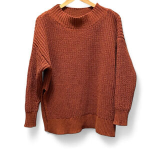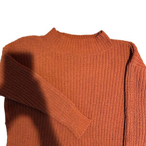 Aerie Chenille Mock Neck Oversized Burnt Orange Sweater w Slits Size XS