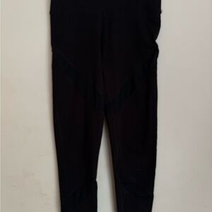 Elevate your workout with these sleek black leggings featuring stylish mesh panels. Perfect for any active lifestyle.