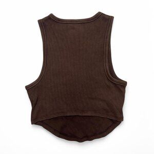 Aerie Chocolate Brown Ribbed Curved Hem Tank Top Cropped Size L