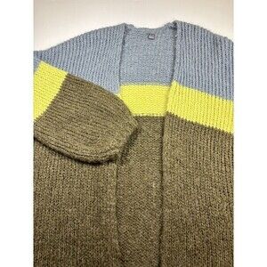 Aerie Chunky Cardigan Blue Green Medium Knit Boho Bohemian Wool Mohair Stripe