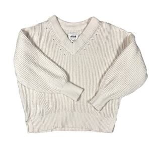 Aerie Chunky Knit Cream Ribbed V-Neck Sweater with Balloon Sleeves Size XXS