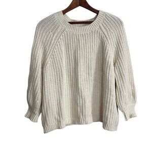 Aerie Chunky Knit Crew Neck Balloon Long Sleeve Pullover Sweater Cream Small